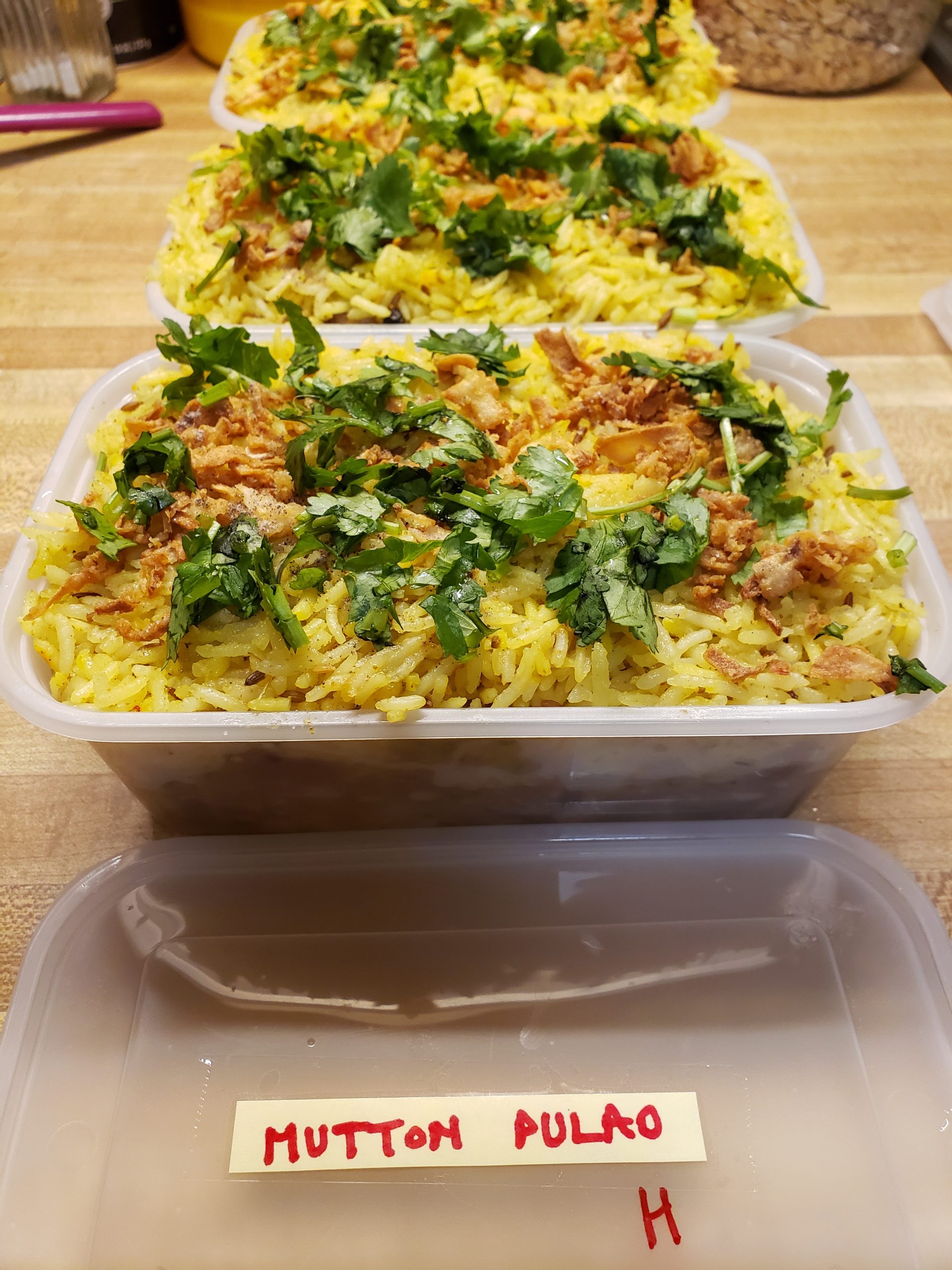 Mutton pulao (boneless) and Masala ni daar quantity